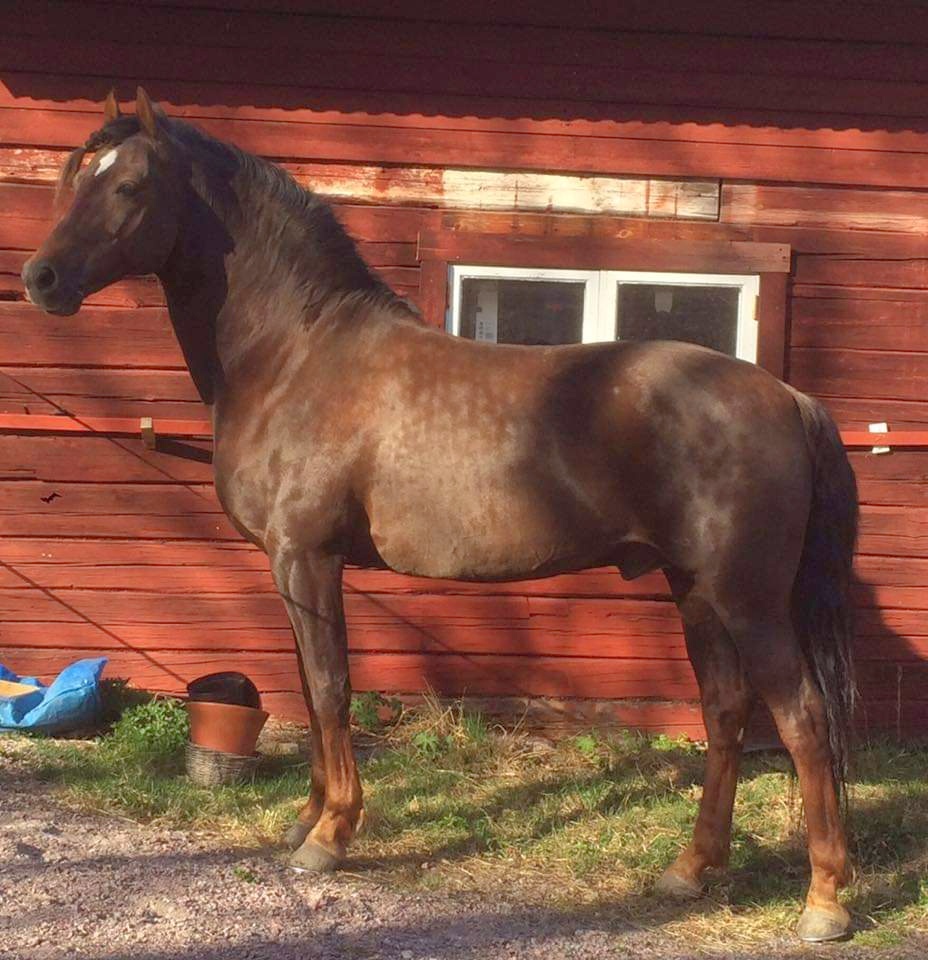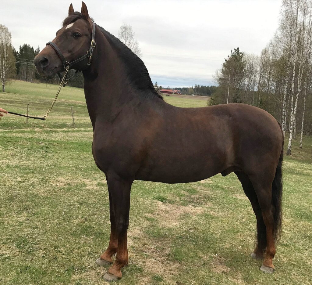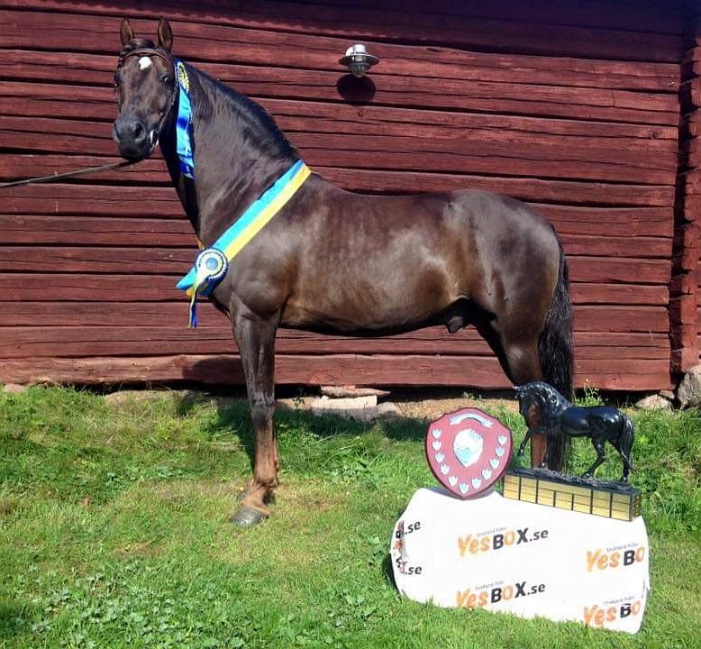 | Avelsvärdering | Exteriör: 8 8 7 7 8 = 39p. ⟐ Hingst av god rastyp. Vackert huvud, djup bog, välformad bred hals, välformat långt kors, djup bål. Något tåtrång fram, omarkerade framknän, biljarderar. Spänd, något kort skritt. Taktmässig, bogfri, vägvinnande trav. |