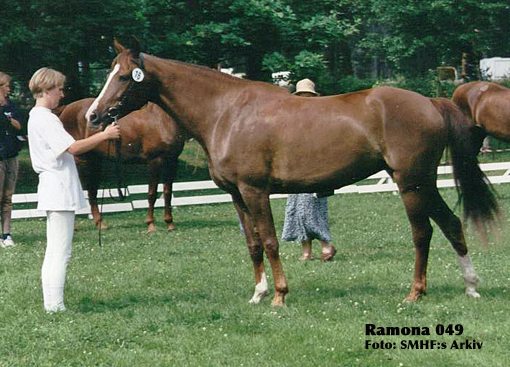 Ramona tilldelades diplom för sina framgångar på tävlingsbanorna under 1999 och vid visningar på MorganRiks. Ramona är sju år och ägs av Margareta Sundlöv och tävlas av Lena Malmström.