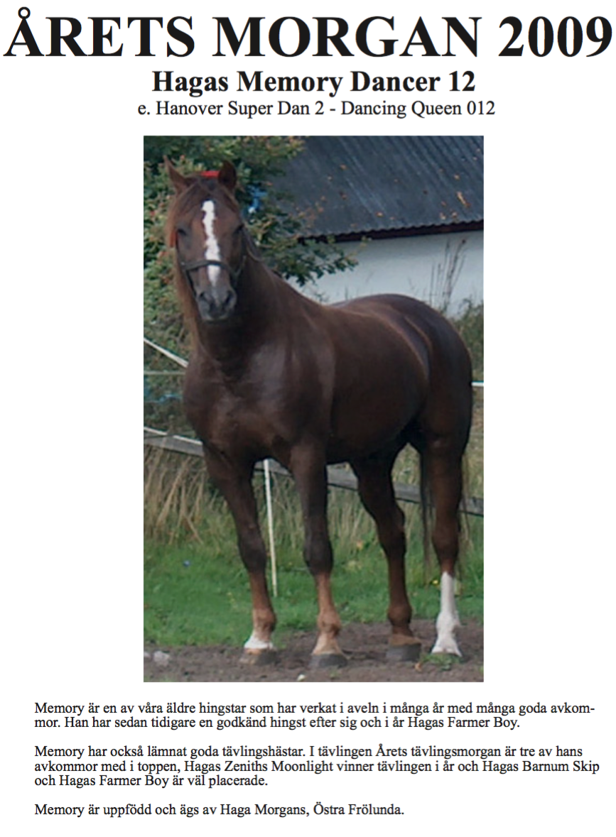 Årets Morgan 2009 delas med Hagas Memory Dancer 12
