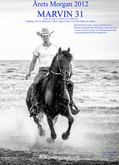 Med SM-Guld i team sorting och SM-Silver i dummy tying samt fina placeringar under hela 2012 i western med sin ryttare Ask Hyldegaard har Marvin 31 gjort fantastisk PR för morganrasen.