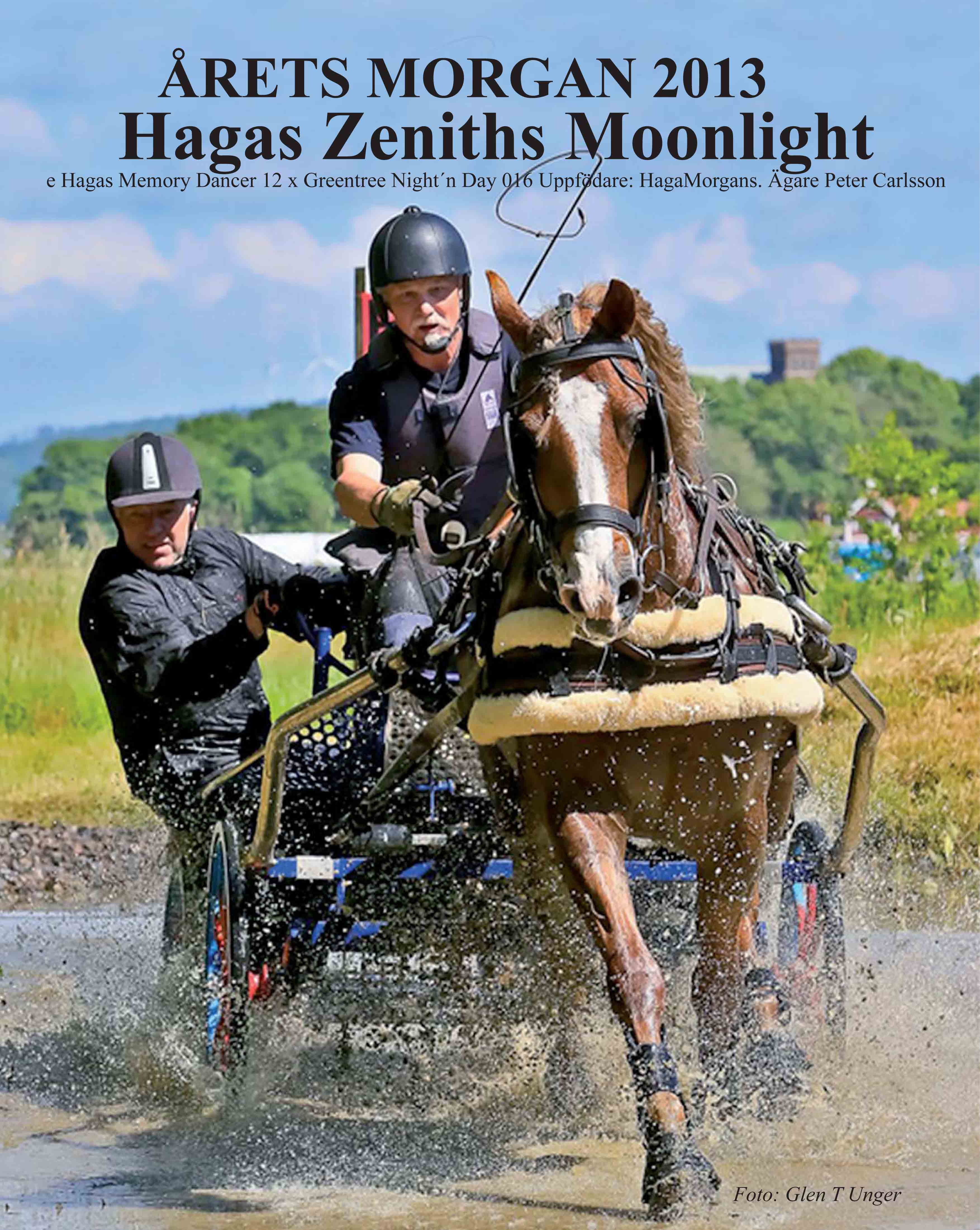 Hagas Zeniths Moonlight har under 2013 med sina fantastiska resultat i körning visat att morganhästen är att räkna med! Både titeln Årets Morgan och Årets Tävlingsmorgan gick till samma häst, nämligen Hagas Zenihs Moonlight. Vi gratulerar ägaren och kusken Peter Carlsson samt uppfödaren Haga Morgans!