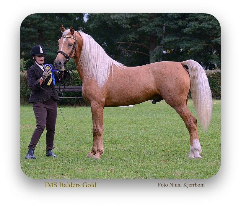 | Meriter | Exteriör: 9 8 8 7 7 = 39p (4år) Morganriks 2013. Morganriks 2011 Bästa Unghingst, Reserv Bästa Unghäst 8 8 8 7 7 = 38p. Maskulin. Välutvecklad. Naturlig resning. Vackert huvud. Kraftig hals. Djup bog och bål. Nöjaktigt korrekt. Taktmässig, något spänd skritt. Taktmässig, något oelastisk trav. Högst bedömd av Amerikanska Domaren Jim Sanders: 52p som gav kritiken: Good type, head and neck excellent, barrel very good, hindquarters good, croup good. Front legs good, back legs slightly in. Walk good. Trot light and airy. Show attitude good. |