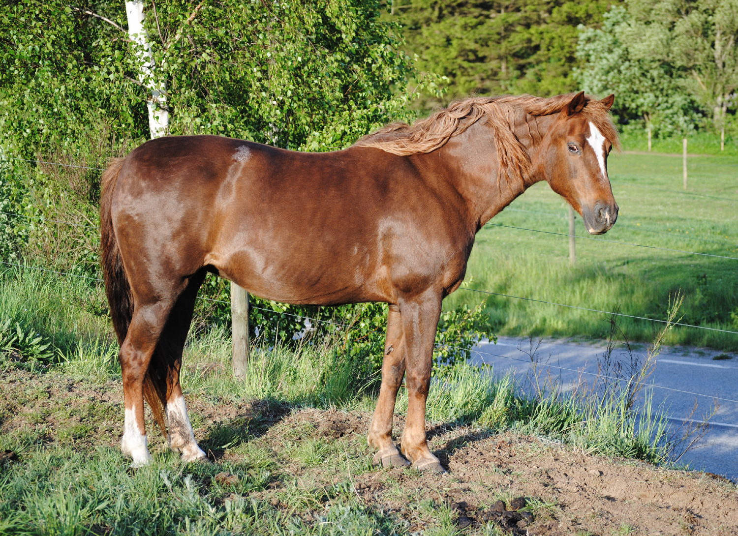 | Färg och tecken: | Fux. Skjuten stjärn. Vit kota h bak, vit halvstrumpa v bak. |